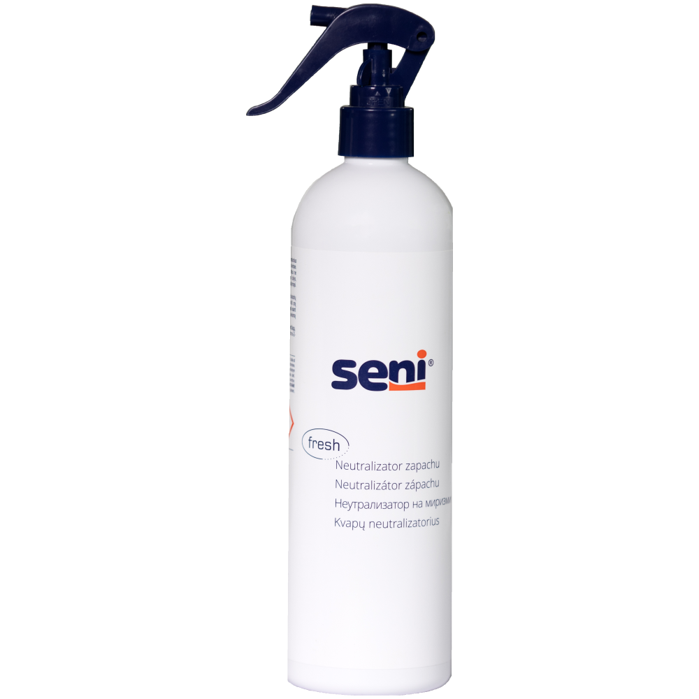 Seni неутрализатор за миризми е иновативно решение за отстраняване неприятните миризми в тоалетна, болнични помещения и стаи в социални институции. За разлика от обикновените ароматизатори, Seni неутрализатор не маскира миризмата, а я отстранява перманентно.